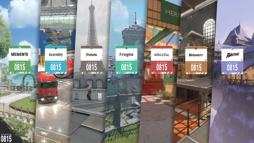 - Mapwahl (Vote): Jedes Team wählt eine Map aus dem Mappool und streicht zwei, die übrige ist der Decider. Im Finale (und Spiel um Platz 3) wird nur eine Map gestrichen.
