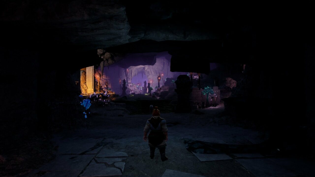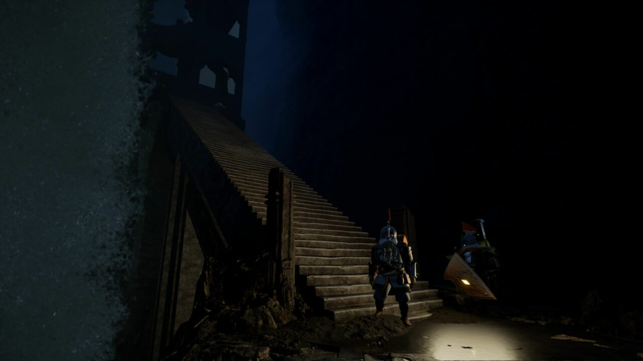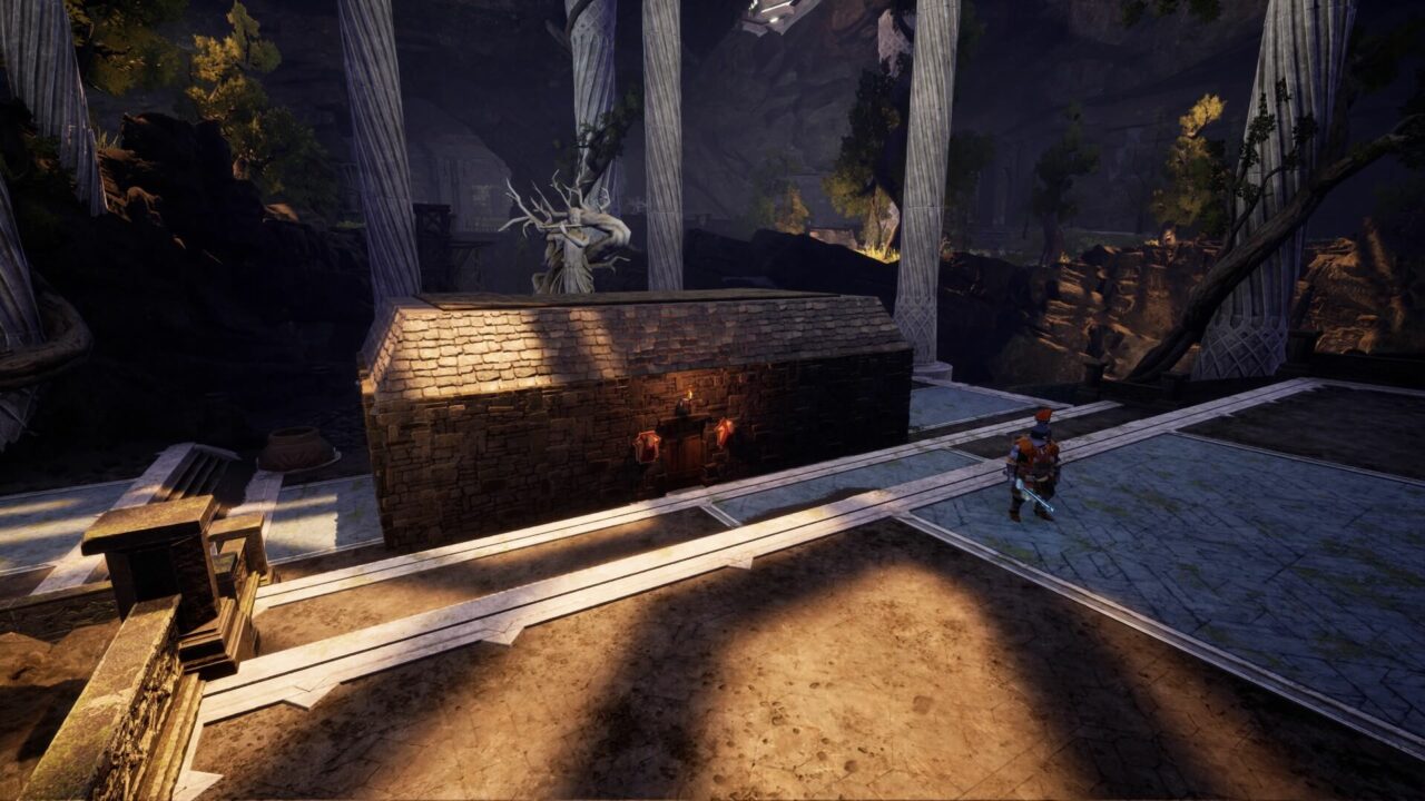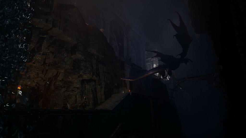 Im nächsten Schritt entscheiden wir uns die Bibliothek, die nächste Station im Questbook, zu erkunden. Danach eröffnet sich uns der Weg zur großen Treppe die wir restaurieren. Auf dem Weg nach oben machen uns Motten das Leben schwer und schaffen uns umzubringen und wir müssen den ganzen Weg noch mal laufen (sorry Ponte). Irgendwann schaffen wir es hoch und wir kommen in das nächste Gebiet. Dort stoßen wir auf einen kleinen Drachen den wir bezwingen – es geht also doch irgendwie.