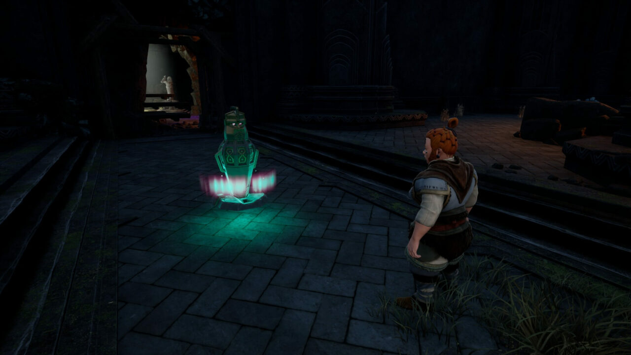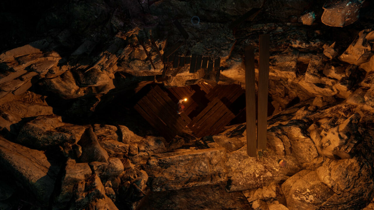 Und dann wird’s brenzlig: Wir stehen vor einem großen Loch im Boden, in dem es verdammt weit runter geht. Einen Fahrstuhl sollen wir reparieren. Wir stehen mit unseren hart gesammelten Materialien am Rand und dann passiert’s: Ponte fällt runter, überlebt, hängt fest. Panik bricht aus aber irgendwie schaffen wir es mit runtergedroppten Materialien einen Kartenstein zu bauen und Ponte kommt wieder nach oben und wir können den Fahrstuhl vollenden. Weiter geht’s in die Niedertiefen.