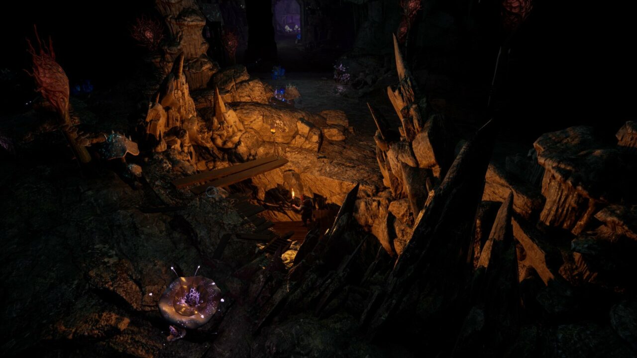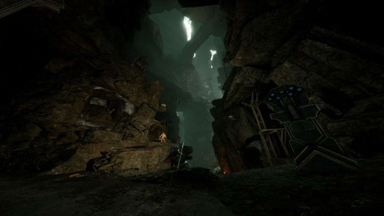 Und denn finde ich noch was richtig krasses: Die Untiefen. Das sind Risse im Boden in den Niedertiefen, in denen man mittels der erwähnten Plateaus (damit baut man sich eine Treppe runter) noch mal richtig weit runter kommt. Unten kann man aber nicht so lange verweilen, weil die Finsternis einen einholt und man irgendwann Energie verliert. Dort unten lauerten noch spezielle Gegner die ich mich alleine nicht anzugehen getraut habe und viele, viele seltene Diamanten. Das ist auf jeden Fall eine Aufgabe für’s Team.