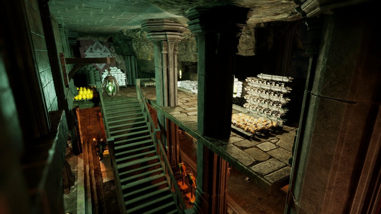 Nach der großen Schmiede endet unsere Reise auch schon fast. Wir erreichen eine richtig schicke große Halle in der wir haufenweise Loot finden. Hinter der Halle dann unser Ende: Die Osttreppe. Um die zu bauen fehlen uns aber die Ressourcen und wir treffen uns danach erstmal nicht wieder.