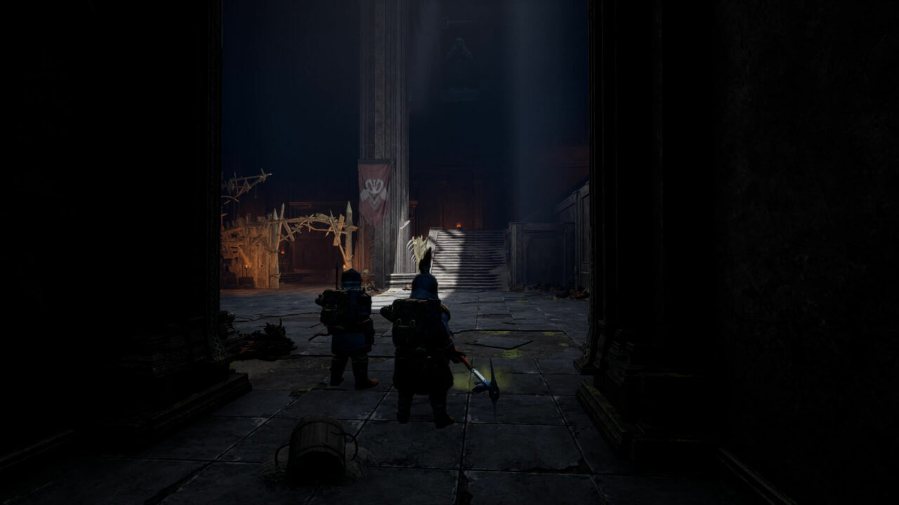 In den Niedertiefen wird es schon ein bisschen komplizierter. Die Ausrüstung wird umfangreicher, so hat Lukas plötzlich eine Armbrust die im Vergleich zum Bogen viel mehr Damage macht und wir sind alle auf seine Treffergenauigkeit angewiesen. Und dann ist da auch noch dieses grüne Gift und ach ja, fast hätte ich es vergessen: Das Verderben. Das war dieser Lila Nebel der uns genau wie das Gift regelmäßig dahinrafft und verzweifeln lässt.